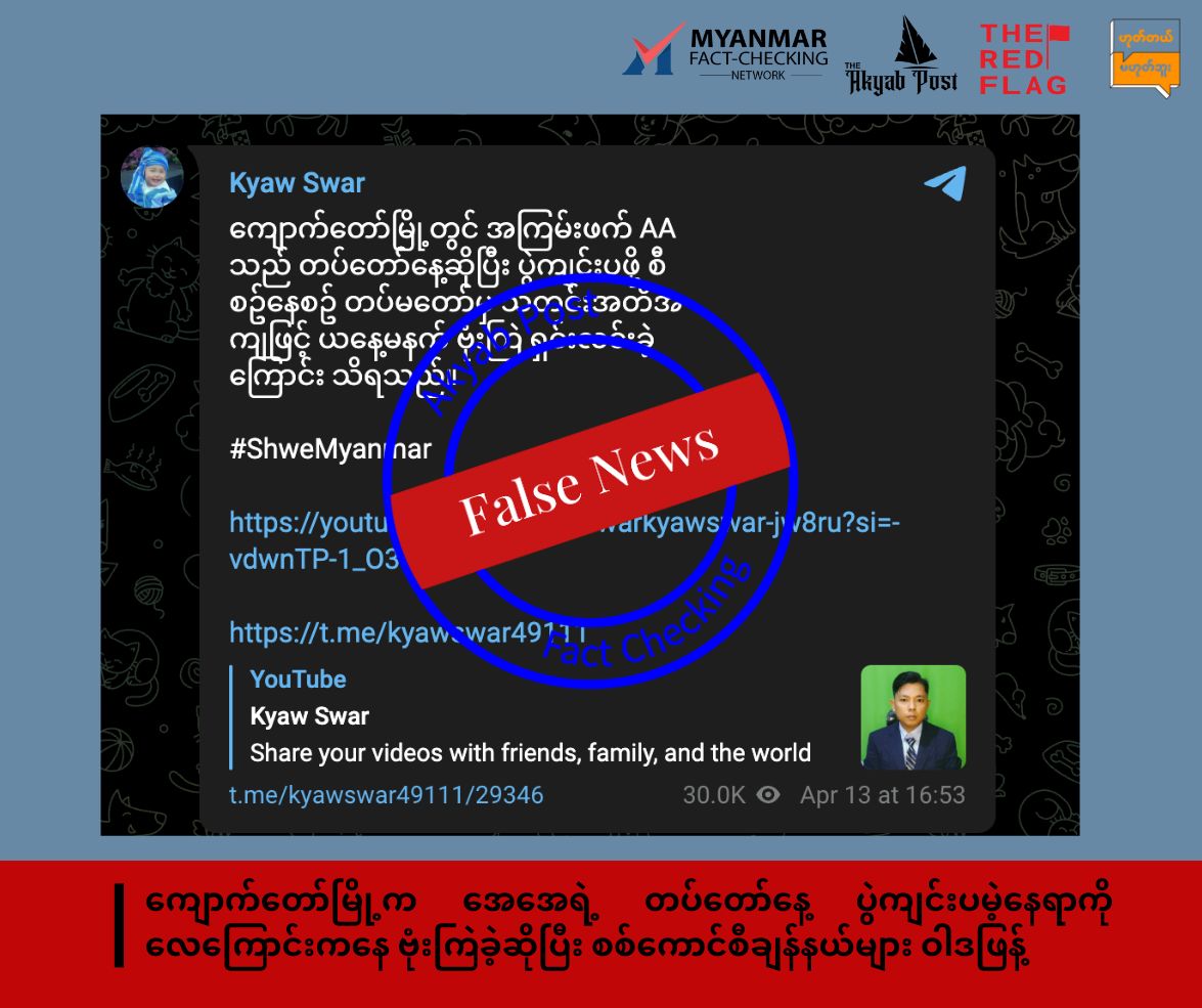Akyab Post ဖက်မှ စစ်ဆေးထားသော သတင်းမှား- https://www.facebook.com/share/p/15rjTRg47P/
