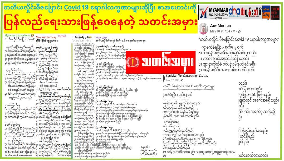 အဲဒီသတင်းကို Myanmar Fact-checking Network အဖွဲ့ဝင်ဖြစ်တဲ့ Delta News Agency နဲ့ လဂွန်းအိမ် တို့က စစ်ဆေးကြည့်တဲ့အခါ ၂၀၂၁ ခုနှစ်က ထုတ်ပြန်ခဲ့တဲ့ စာအဟောင်းကို ပြန်လည်ဖြန့်ဝေနေတာသာဖြစ် တာကို တွေ့ရှိရပြီး လက်ရှိ Covid 19 နဲ့ပတ်သက်လို့ ရေးသားဖြန့်ဝေထားတဲ့ Update ဖြစ်နေတဲ့ ထုတ်ပြန် ချက်မဟုတ်ဘူးဆိုတာကို စိစစ်သိရှိရပါတယ်။