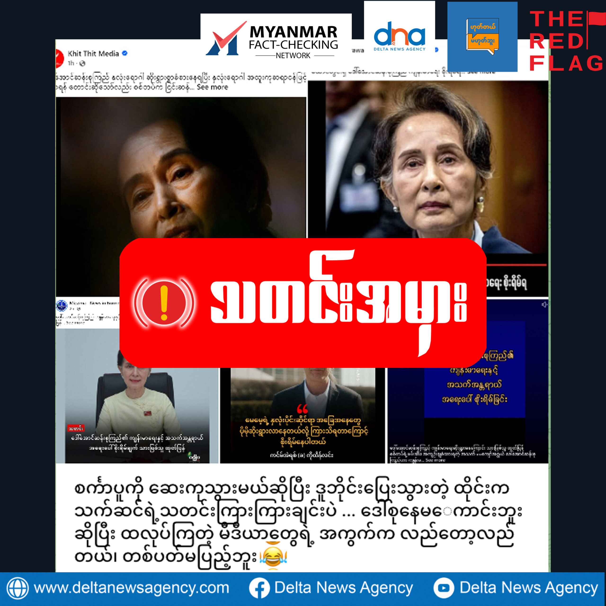 ထိုင်းဝန်ကြီးချုပ် (ဟောင်း) သက်ဆင် ရှင်နာဝပ်ရဲ့ထွက်ပြေးတိမ်းရှောင်တဲ့အကြောင်းရာနဲ့ နိုင်ငံတော်အတိုင်ပင်ခံပုဂ္ဂိုလ် ဒေါ်အောင်ဆန်းစုကြည်ရဲ့ နှလုံးကျန်းမာရေးအခြေနေမှာ ဆက်စပ်မှုမရှိဘဲ လိုသလိုချိတ်ဆက်ဖြန့်ဝေနေတဲ့သတင်းမှားဖြစ်ကြောင်းကိုလည်းအတည်ပြုနိုင်ခဲ့ပါတယ်။