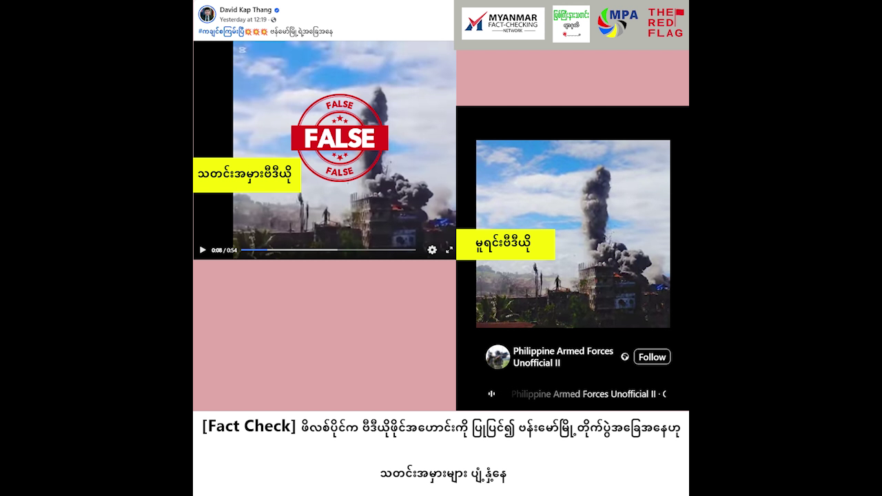 ဖိလစ်ပိုင်က ဗီဒီယိုဖိုင်အဟောင်းကို ပြုပြင်၍ ဗန်းမော်မြို့ တိုက်ပွဲအခြေအနေဟု သတင်းအမှားများ ပျံ့နှံ့နေ