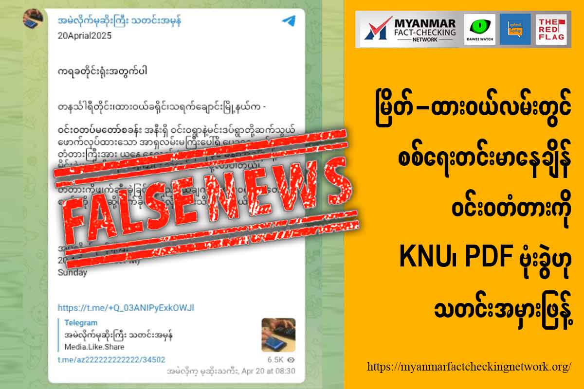 Myanmar Factchecking Network အဖွဲ့ဝင်ဖြစ်တဲ့ Dawei Watch က အထက်ပါအကြောင်းအရာကို အချက်အလက် စစ်ဆေးကြည့်ရာမှာတော့သတင်းအမှားဖြစ်တာကို စိစစ်တွေ့ရှိရပါတယ်။