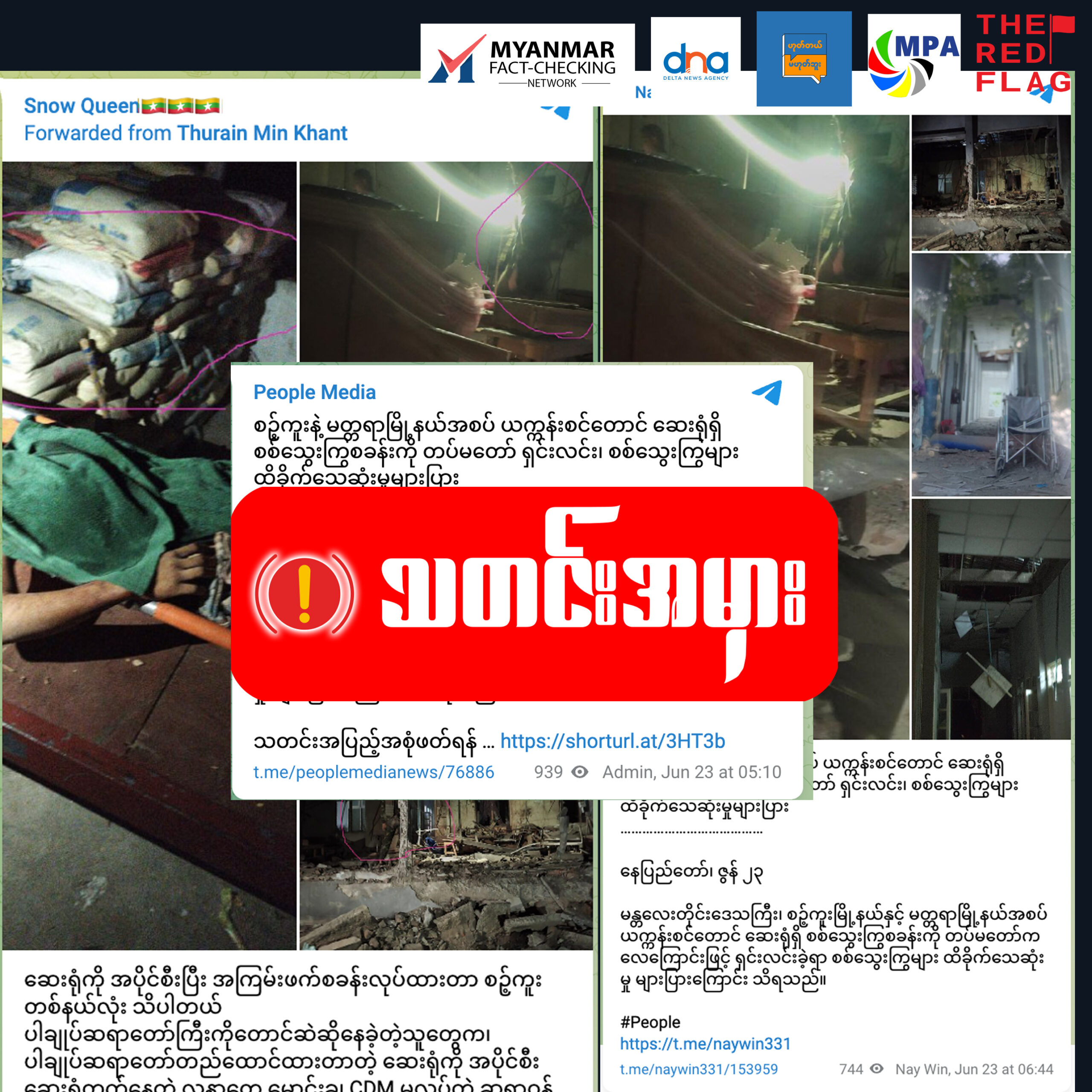 တယ်လီဂရမ်တွင် ပျံ့နှံ့နေသော အကြောင်းအရာနှင့် ပတ်သက်၍ Myanmar Fact-Checking Network ၏ အဖွဲ့ဝင်ဖြစ်သော MPA နှင့် DNA တို့က အချက်အလက် စစ်ဆေးကြည့်ရာ သတင်းအမှားဖြစ်ကြောင်း စစ်ဆေးတွေ့ရှိခဲ့သည်။