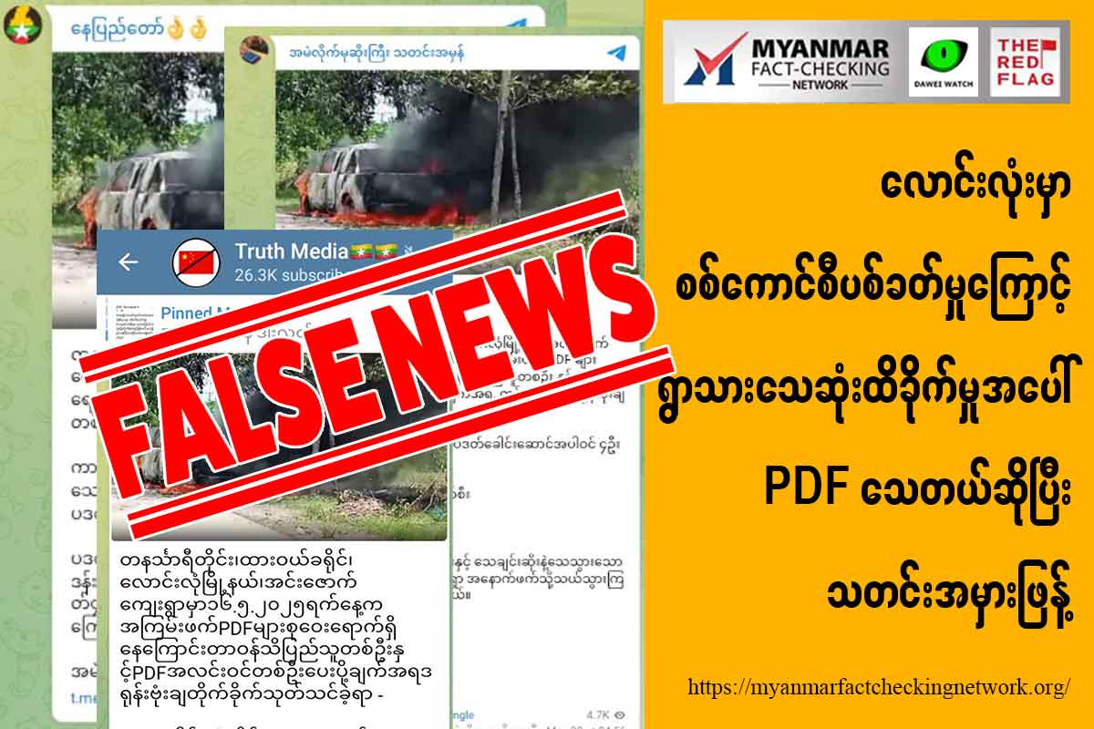 အဲဒီဖော်ပြချက်နဲ့ ပတ်သက်လို့ Myanmar Factchecking Network အဖွဲ့ဝင်ဖြစ်တဲ့ Dawei Watch က အချက်အလက် စိစစ်ကြည့်ရာမှာတော့ ရွာသားတွေ ထိခိုက်သေဆုံးမှုကို PDF တွေ ထိခိုက်တာဆိုပြီး ပုံဖော်သတင်းအမှား ဖြန့်ချိတာအဖြစ် စိစစ်တွေ့ရှိရပါတယ်။