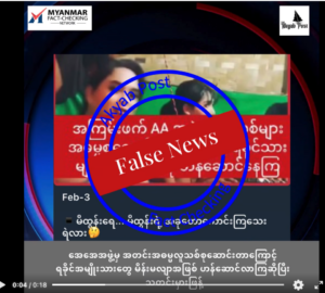 ဝါဒဖြန့်ချန်နယ်တွေမှာ ပျံ့နှံ့လို့ရှိတဲ့ ပို့စ်ကို MFCN အဖွဲ့ဝင်ဖြစ်တဲ့ Akyab Post ကနေ စစ်ဆေးကြည့်လိုက်တဲ့ အခါမှာ ဆိုရှယ်မီဒီယာမှာ ဟာသအဖြစ်တင်ထားတဲ့ ဗီဒီယိုတစ်ခုကို သုံးပြီး လိုအပ်သလို ပုံဖော်ရေးသားပြီး သတင်းတုသတင်းမှားဖြန့်ခဲ့တာကို တွေ့ရပါတယ်။