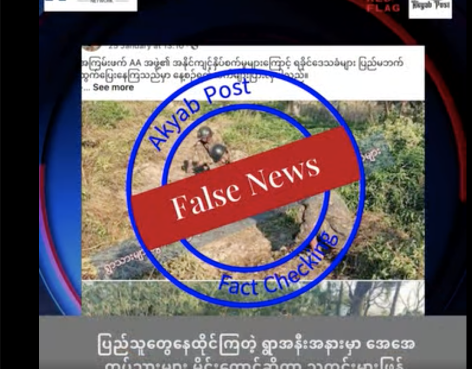 MFCN/ The Akyab Post/ The Red Flag Fact-check 28 Jan 2025 အခုရက်ပိုင်း စစ်ကောင်စီဝါဒဖြန့်ချန်နယ်တွေမှာ အာရက္ခတပ်တော် အေအေက ပြည်သူတွေ နေထိုင်ကြတဲ့ ရွာအနီးအနားပတ်ဝန်းကျင်မှာ မိုင်းထောင်နေတယ်ဆိုပြီးတော့ ရေးသားထားကြတဲ့ ပို့စ်တွေဟာ ပုံနဲ့တကွ ပျံ့နှံ့လျက်ရှိပါတယ်။ တယ်လီဂရန်မှာ စစ်ကောင်စီဝါဒဖြန့်ချန်နယ်တစ်ခုဖြစ်တဲ့ “တိုက်ပွဲသတင်းစုံ” []
