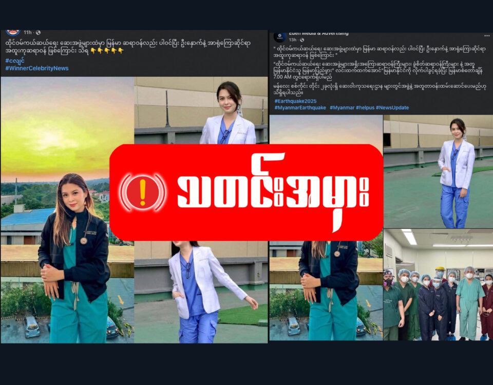 ၂၀၂၅ခုနှစ်၊ ဧပြီလ၊ ၂ရက်။ (Fact Check) DNA/ The Red Flag ထိုင်ဝမ်ကနေ မြန်မာပြည်ကိုလာရောက်ပြီးဆေးကုသမှုပေးမယ့် ဆရာဝန်တွေထဲမှာ မြန်မာနိုင်ငံသား ဦးနှောက်နဲ့ အာရုံကြောဆိုင်ရာ အထူးကုဆရာဝန် တဦးပါဝင်တယ်ဆိုပြီး အမျိုးသမီးတဦးရဲ့ဓါတ်ပုံသုံးပုံကို အသုံးပြုပြီး ဖြန့်ဝေထားတဲ့ သတင်းတခု လူမှုကွန်ရက်စာမျက်တွေပေါ်မှာ ပျံ့နှံ့နေပါတယ်။ အဲ့ဒီအကြောင်းအရာကို Winner Celebrity []