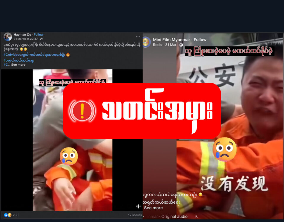 ငလျင်ဘေးနဲ့ ပတ်သက်ပြီး ငိုနေတဲ့တရုတ်ကယ်ဆယ်ရေးသမားရုပ်သံဟောင်းကို အသုံးပြုပြီး ဖြန့်ဝေနေတဲ့သတင်းမှား