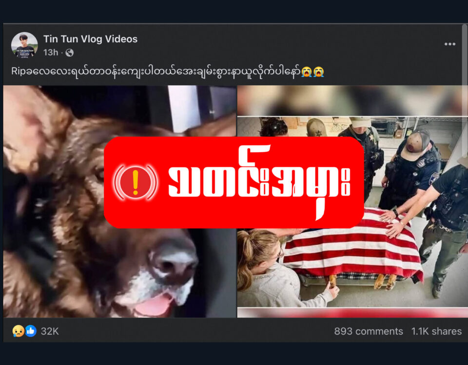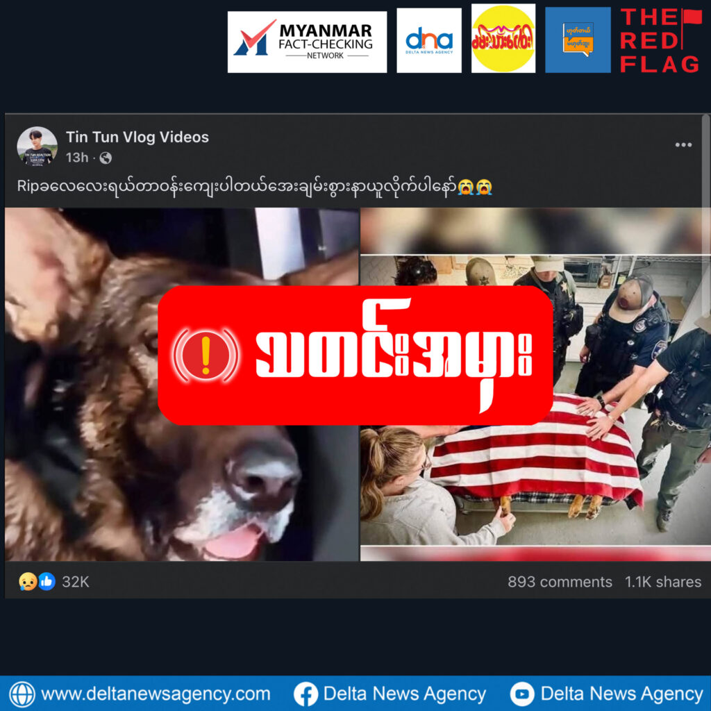 ဧပြီလ၊ ၂ရက်။ (Fact Check) DNA/ KSN/ The Red Flag ငလျင်အတွက်လူရှာ ကယ်ဆယ်ပေးနေတဲ့ ကယ်ဆယ်ရေးခွေးတကောင်သေဆုံးသွားသယောင် ဖြန့်ဝေနေတဲ့ သတင်းတွေ လူမှုကွန်ရက်စာမျက်နှာပေါ်မှာ ပျံ့နှံ့နေပါတယ်။ အဲ့ဒီအကြောင်းအရာနဲ့ပတ်သက်လို့ Tin Tun Vlog Videos ဆိုတဲ့ လူမှုကွန်ရက်စာမျက်နှာကနေ စတင်ဖြန့်ဝေနေတာဖြစ်တာကိုတွေ့ရပြီး reaction ပြုလုပ်သူ []