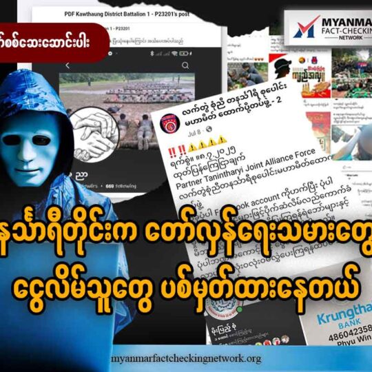 á‚á€á‚á… á€á€¯á€”ှစ် ဇူလá€á€¯á€„်လ á‚რရက်နေ့ á€á€™á€ºá€¸á€žá€¬á€¸á€„ေါá€á€ºá€¸/ MFCN / The Red Flag (Prebunking) ကျá€á€±á€¬á€ºá€á€á€¯á€· လန်ဆန်းá€á€€á€ºá€€á€¼á€½á€”ေá€á€»á€á€”် ကောက်ဖá€á€ºá€œá€á€¯á€€á€ºá€á€²á€· မဟုá€á€ºá€™á€™á€¾á€”် သá€á€„်းအမှားá€á€…်ပုဒ်ကြောင့် စá€á€¯á€›á€á€™á€ºá€¸á€…á€á€á€ºá€”ဲ သင့်ကá€á€¯á€šá€ºá€á€á€¯á€„်ကပါ ထပ်ဆင့်á€á€±á€™á€»á€¾á€™á€á€á€²á€·á€›á€„် သင့်သူငယ်á€á€»á€„်း သင့်လူမှုပá€á€ºá€á€”်ကျင်ကပါ စá€á€á€ºá€Šá€…်သောကရောက်နေရမှာဖြစ်ပြီး အá€á€»á€á€¯á€·á€¡á€™á€¯á€”်းပွားá€á€²á€· သá€á€„်းအမှားá€á€½á€±á€†á€á€¯á€›á€„် ပဋá€á€•က္ဠ[…]