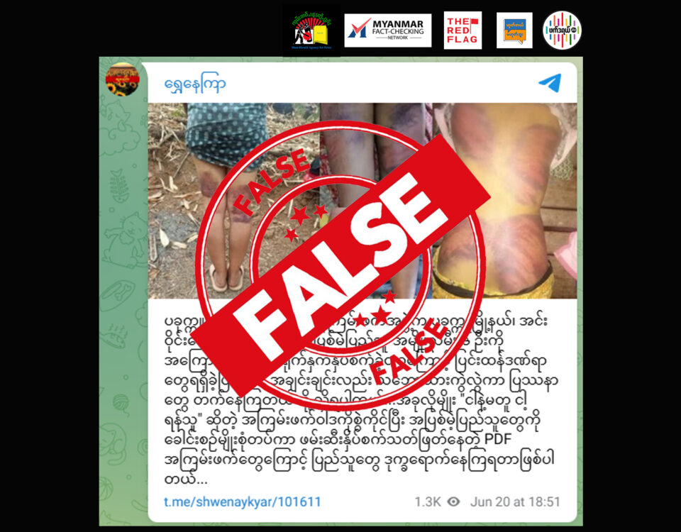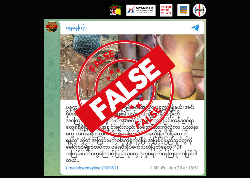 ၂၀၂၅ ခုနှစ်၊ ဇွန်လ ၂၁ ရက်နေ့ ဖက်ဒရယ် FM/ MFCN/ The Red Flag Fact Check – အချက်လက် စစ်ဆေးခြင်း CDM သူနာပြု အမျိုးသမီးရဲဘော်တယောက်ကို PDF တပ်ရင်းမှူးက လူ့အခွင့်အရေးချိုးဖောက်နှိပ်စက်ထားတဲ့ပုံကို အသုံးပြုပြီး ပခုက္ကူ PDF တပ်ရင်း(၈)က []
