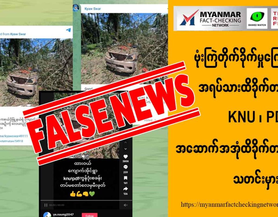 ဗုံးကြဲတိုက်ခိုက်မှုကြောင့် အရပ်သားထိခိုက်တာကို KNU ၊ PDF အဆောက်အအုံထိခိုက်တာလို့ သတင်းမှားဖြန့်
