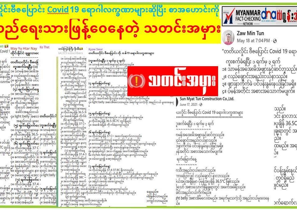 တတိယလှိုင်းဗီဇပြောင်း Covid 19 ရောဂါလက္ခဏာများဆိုပြီး စာအဟောင်းကို ပြန်လည်ရေးသား ဖြန့်ဝေနေတဲ့ သတင်းအမှား