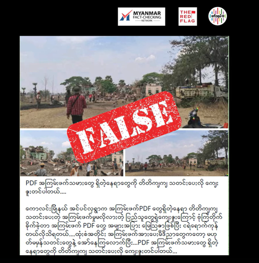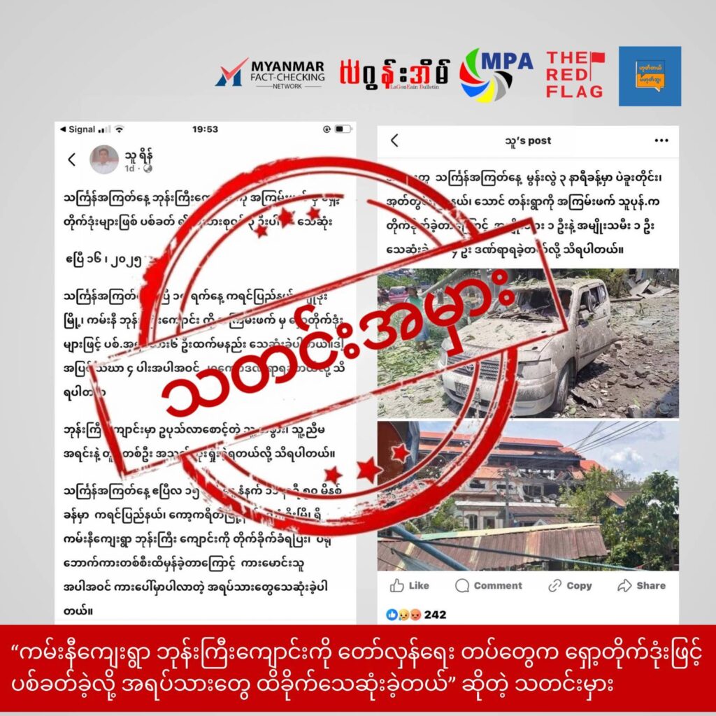 “ကမ်းနီကျေးရွာ ဘုန်းကြီးကျောင်းကို တော်လှန်ရေးတပ်တွေက ရှော့တိုက်ဒုံးဖြင့် ပစ်ခတ်ခဲ့လို့ အရပ်သား‌တွေ ထိခိုက်သေဆုံး ခဲ့တယ်” ဆိုတဲ့ သတင်းမှား