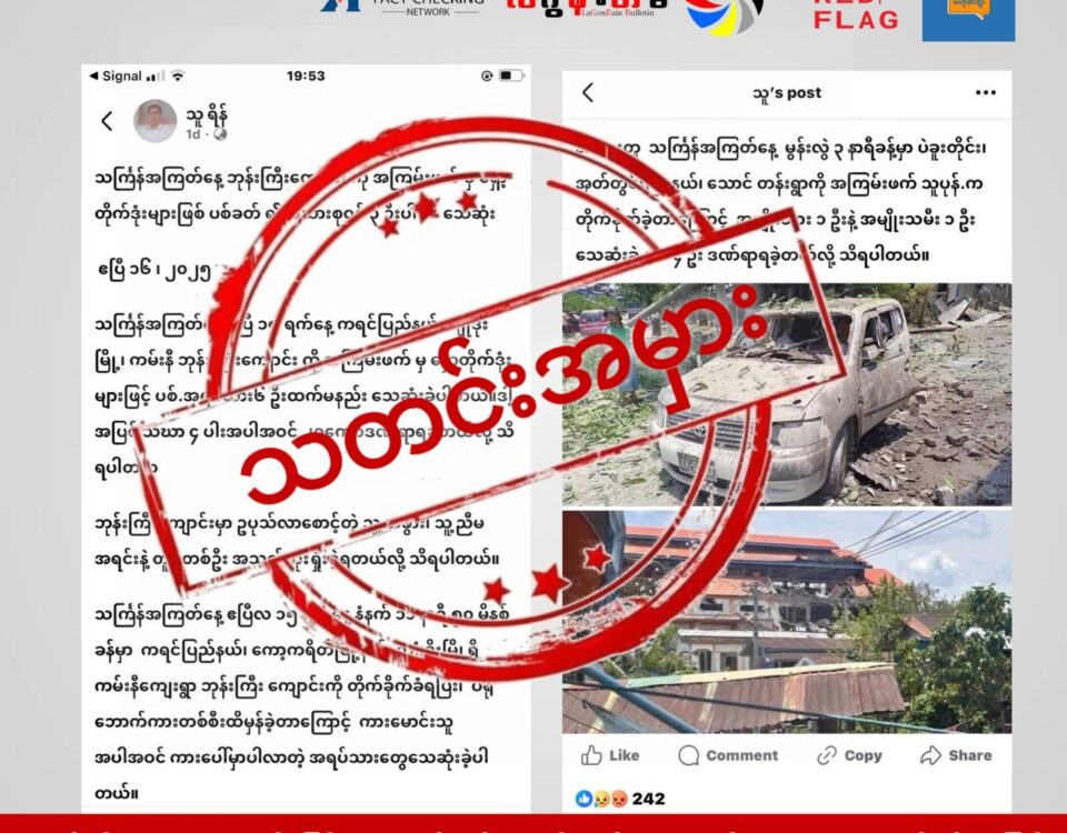 ဘီးလင်း၊ မင်းစောရွာဘုန်းကြီးကျောင်း လေကြောင်းတိုက်ခိုက်ခံရမှုအပေါ် စစ်ကောင်စီကတန်ပြန်လွှင့်သည့် သတင်းအမှား