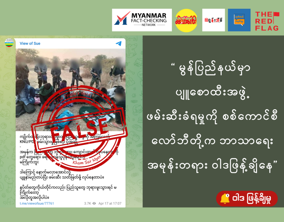 ၂၀၂၅ ခုနှစ်၊ ဧပြီလ ၂၀ ရက် ခမ်းသားငေါဝ်း/လဂွန်းအိမ်စာစဉ် /MFCN/The Red Flag Fact Check – အချက်လက်စစ်ဆေးခြင်း စစ်ကောင်စီလော်ဘီတွေက တယ်လီဂရမ်နှင့် ဖေ့ဘွတ်စာမျက်နှာတွေမှာ ကျိုက်ထီးရိုးဘုရားလာဖူးတဲ့ ပြည်သူတွေကို KNUနဲ့ PDF တို့က ဖမ်းသွားခဲ့တဲ့ ဖြစ်စဉ် ပုံအချို့ ဆိုပြီး ဓာတ်ပုံတစ်ပုံနှင့်အတူ []