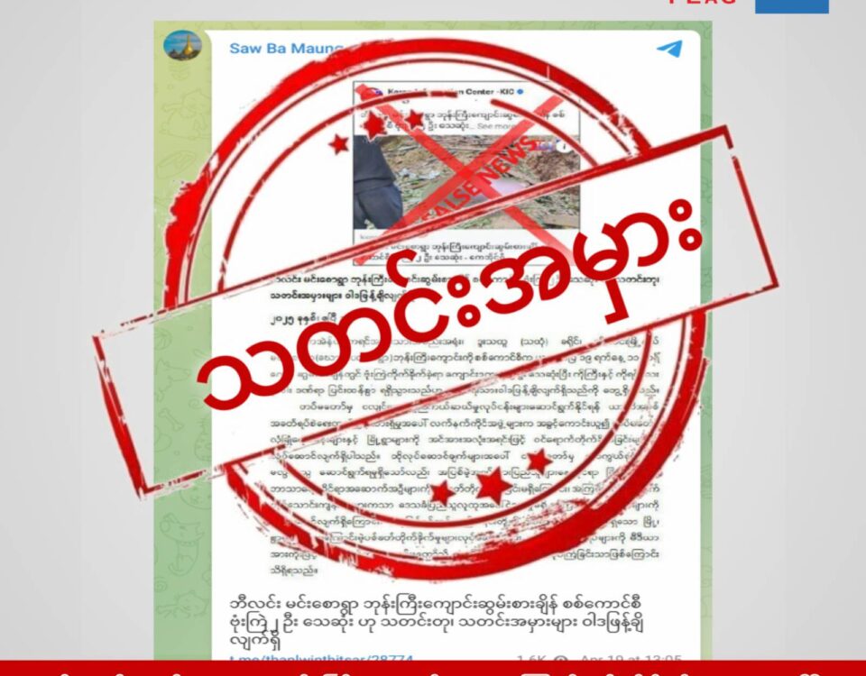 ဧပြီလ ၁၈ ရက်၊ ၂၀၂၅။ (Fact check) MPA, Lagon Eain, The Red Flag, ဟုတ်တယ် Vs မဟုတ်ဘူး “သင်္ကြန်အကြတ်နေ့ ဧပြီ ၁၅ ရက်နေ့ က ကရင် ပြည်နယ် ကျုံဒိုးမြို့၊ ကမ်းနီဘုန်းကြီးကျောင်း ကို အကြမ်းဖက်မှ []