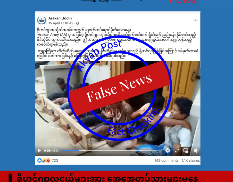 20 April 2025 Akyab Post ရိုဟင်ဂျာလူငယ်တွေကို ထိပ်တုံးခတ်ထားပြီးတော့ လူတစ်ဦးက ရိုက်နှက်နေတဲ့​ ဗီဒီယိုတစ်ခု ဧပြီလ ၁၅ ရက်နေ့က စလို့ ဆိုရှယ်မီဒီယာထက်မှာ ပျံ့နှံ့လျက်ရှိပါတယ်။ ဆိုရှယ်မီဒီယာပေါ်က သတင်းအမှားဖြန့်တဲ့ အကောင့်တွေနဲ့ စစ်ကောင်စီဝါဒဖြန့် ချန်နယ်တွေကနေ အေအေတပ်သားတွေက ရိုဟင်ဂျာတွေအပေါ် ရိုက်နှက်နေပါတယ်ဆိုပြီးတော့ ဒီဗီဒီယိုကို အသုံးပြုပြီးတော့ []