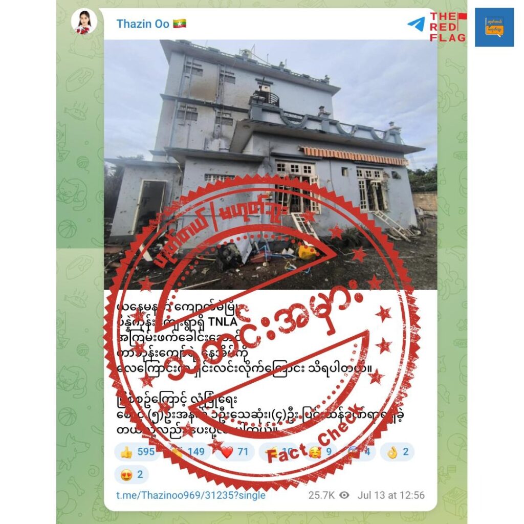 16 July 2025 မကွေးတိုင်း ၊ပေါက်မြို့နယ်နဲ့ မြိုင်မြို့နယ်စပ်ရှိ နယ်သတ်ကျေးရွာကို စစ်ကောင်စီတပ်က ဇူလိုင်လ ၁၅ရက်နေ့ ညနေ ၄နာရီဝန်းကျင်ခန့်က လေကြောင်းတိုက်ခိုက်မှုပြုလုပ်ခဲ့ပါတယ်။ မကွေးတိုင်း၊ပေါက်မြို့နယ်၊ နသတ်ကျေးရွာရှိ စစ်သွေးကြ PDFအဖွဲ့ဝင်တွေ ရေနံတူးဖော်နေတဲ့ နေရာကို တပ်မတော်က လေကြောင်းနဲ့ ဗုံးကြဲရှင်းလင်းခဲ့တယ်လို့ စစ်လော်ဘီဝါဒါဖြန့် ချန်နယ်တစ်ခုဖြစ်တဲ့ D.I.Thameedaw ချန်နယ်မှာ []
