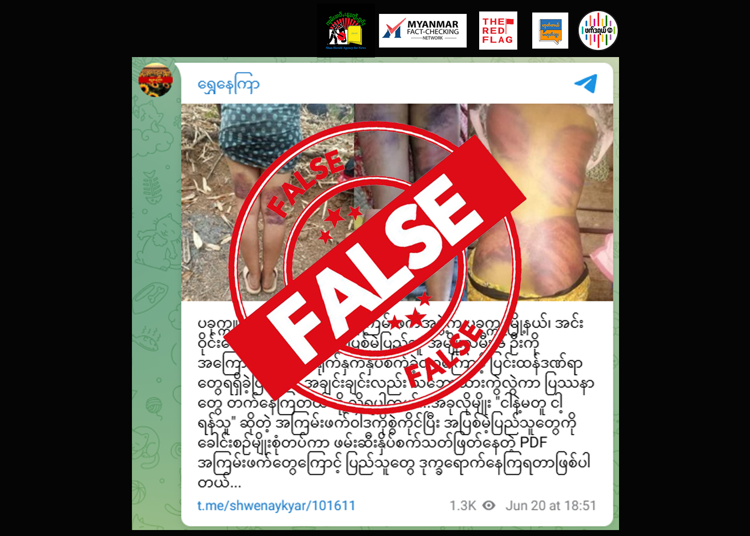 အဆိုပါ ဖြန့်ဝေထားတဲ့ အကြောင်းအရာကို Myanmar Fact- Checking Network (MFCN) အဖွဲ့ဝင်ဖြစ်တဲ့ ဖက်ဒရယ် FM အချက်အလက်စစ်ဆေးရေးအဖွဲ့က စိစစ်ကြည့်တဲ့အခါ သတင်းအမှားဖြစ်ကြောင်း စစ်ဆေးတွေ့ရှိရပါတယ်။