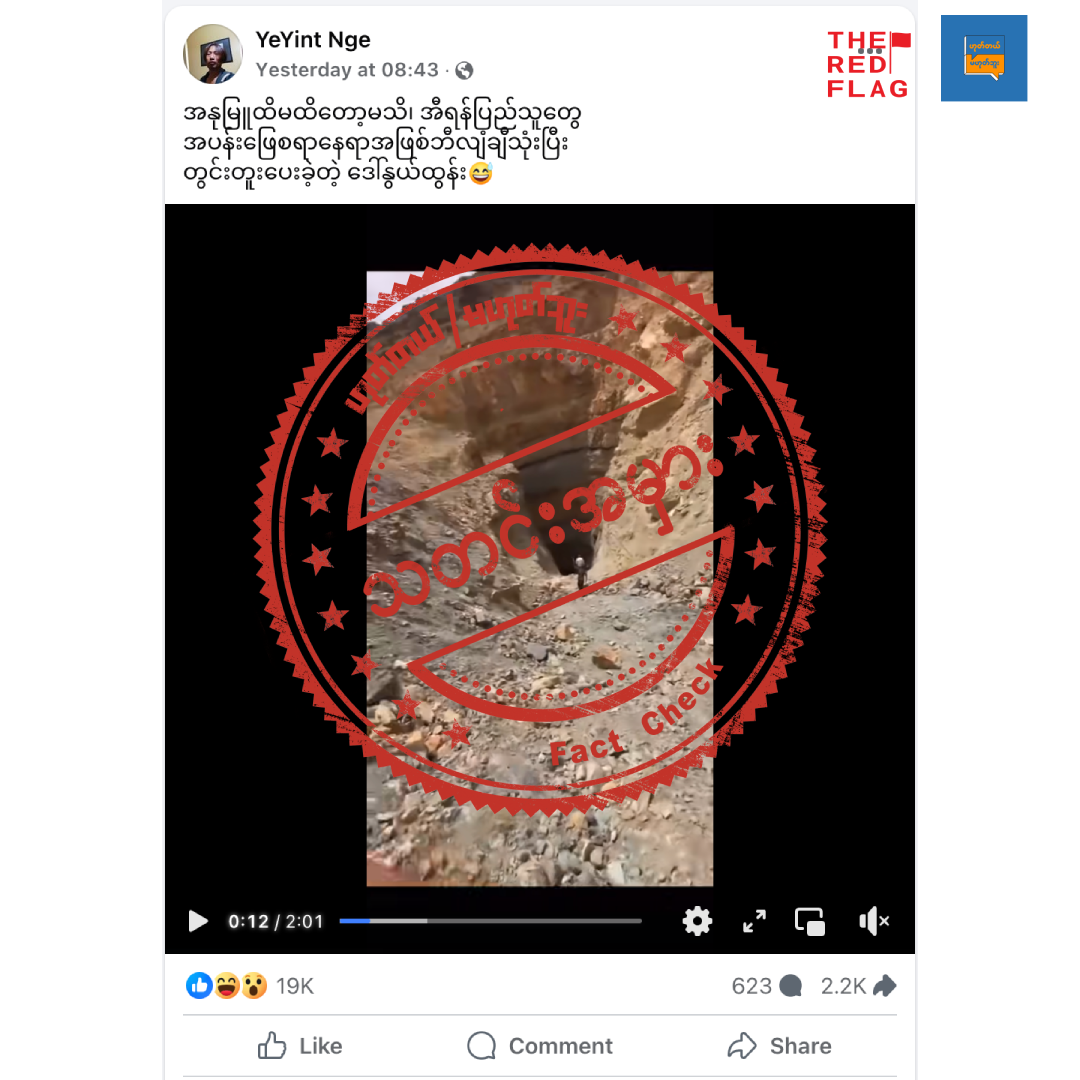 ဟုတ်တယ် Vs မဟုတ်ဘူးရဲ့ အချက်အလက်စစ်ဆေးသူတွေဟာ လူမှုမီဒီယာ Facebook ပေါ်မှာ လူပြော များပျံ့နှံ့နေတဲ့ ဗီဒီယိုတခုကိုတွေ့ရှိခဲ့ပါတယ်။ ပျံ့နှံ့နေတဲ့ဗီဒီယိုဖိုင်ကတော့ အီရန်နိုင်ငံရဲ့ နျူကလိယား စက်ရုံရှိတဲ့နေရာကို အမေရိကန်က ဘန်ကာခွင်းဗုံးတွေနဲ့ ဗုံးကြဲတိုက်ခိုက်မှုကြောင့် ဖြစ်ပေါ်လာတဲ့ တွင်း ဆိုပြီး ပြောဆိုရေးသားဖြန့်ဝေနေကြတာဖြစ်ပါတယ်။