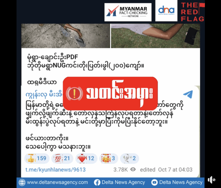 Fact-check | 9 Oct 2025 Myanmar Pressphoto Agency/ The Red Flag မြိုင်မြို့နယ်တွင် PDF များကို လေကြောင်းဗုံးကြဲခဲ့ရာ PDF အများအပြား သေဆုံးဟုဆိုသည့် အကြောင်း အရာ စစ်ကော်မရှင် ထောက်ခံသော တယ်လီဂရမ်ချန်နယ်များတွင် ပျံ့နှံ့လျက်ရှိသည်။ “Truth Media”