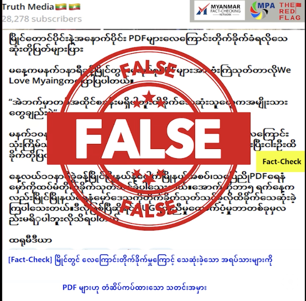 မြိုင်တွင် လေကြောင်းတိုက်ခိုက်မှုကြောင့် သေဆုံးခဲ့သော အရပ်သားများကို PDF များဟု တံဆိပ်ကပ်ထား သော သတင်းမှား