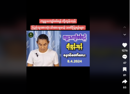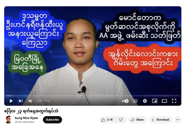 စစ်တပ်လော်ဘီတစ်ဦးဖြစ်သည့် Aung Moe Kyaw Youtube Channel မှ တစ်ဆင့် အောက်ပါအတိုင်း ပြောဆိုခဲ့သည်။