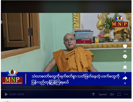 အစ္စလာမ်ဘာသာဝင်များအား ရခိုင်လူမျိုးများနှင့် ပြဿနာဖြစ်စေရန် ရည်ရွယ်ဖြန့်ဝေသည့် ဗီဒီယိုဖိုင်တစ်ခုကို မဘသ အစွန်းရောက် ချန်နယ်လ်တစ်ခုဖြစ်သည့် We Love မပုတု YouTube Channel မှ မေလ ၁၆ ရက်တွင် AA ကောင်းမှုအကြောင်းပြုပြီး ဘုန်းကြီးကျောင်းကို ဗလီလုပ်နေပြီဆိုသည့်ခေါင်းစဉ်ဖြင့် ဖြန့်ဝေခဲ့သည်။ ဖြန့်ဝေထားသည့် ဗီဒီယိုဖိုင်ထဲတွင် ဗုဒ္ဓရုပ်ပွားတော်များကြား အစ္စလာမ်ဘာသာဝင်များ ဝတ်ပြုဆုတောင်းနေသည်ကိုမြင်တွေ့ရသည်။ ယင်းဗီဒီယိုမှာ ရခိုင်ပြည်နယ်တွင် ဟုဆိုထားသော်လည်း Comment တွင် မှတ်ချက်ရေးထားမှုများ အရ အင်ဒိုနီးရှားနိုင်ငံတွင်ဖြစ်သည်ဟု သိရသည်။ အမှန်တကယ် ဟုတ်မဟုတ် စိစစ်ရန်လိုအပ်ပါသည်။